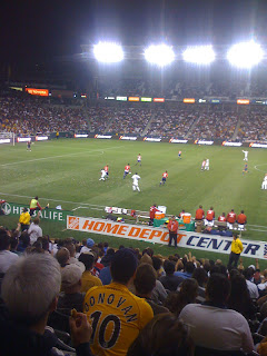 Mike showed up later that afternoon and we then headed out to watch some soccer. The Galaxy was playing Chivas USA in an inter-city rivalry that was actually pretty fun to watch. The Roach brothers have some sweet connections so I was treated to amazing seats mid-field, about 25 rows up. Pretty perfect, really. The Galaxy won 5-3 with Landon Donovan pouring in a hat trick. After the game, I drove the guys back to the Playa (John has a sweet whip) and then we went out late-night to Father’s Office, a cool bar with a new location in L.A.. They revamped an abandoned old bread factory and turned it into a bunch of upscale shops and whatnot. Pretty sweet.